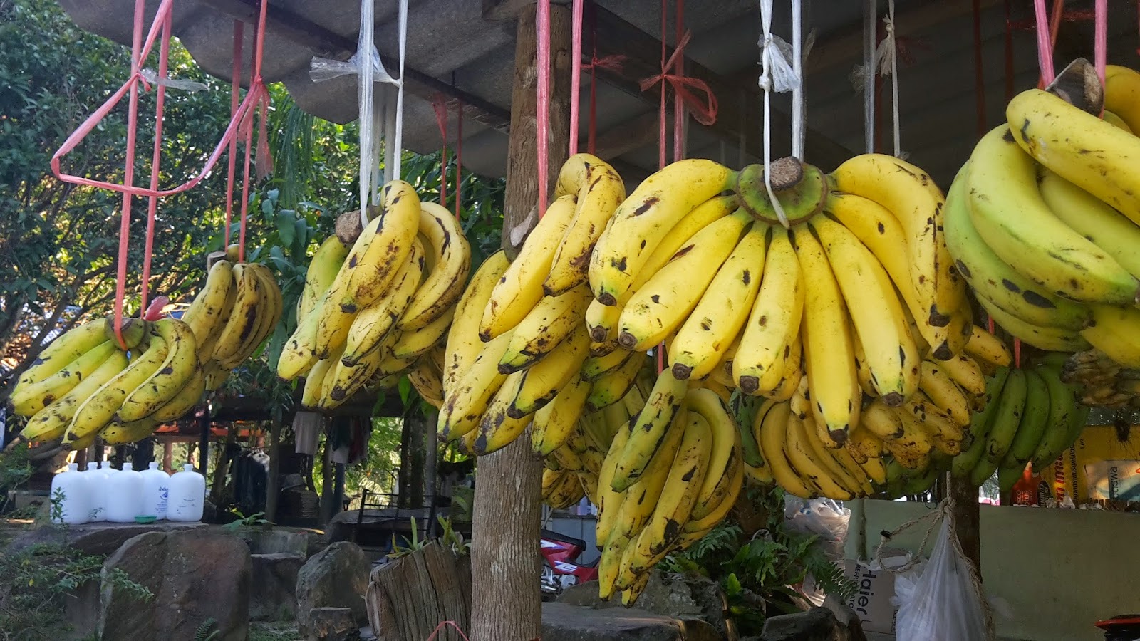 nur bin ich schon ziemlich im thailändischen Rhythmus angekommen - es ist inzwischen 17 Uhr und ich fang demnächst mal an.... War gemütlich am "Mittag " frühstücken, jetzt gibt's nen Bananen und Dosenkaffee Zvieri und dann mal schauen....